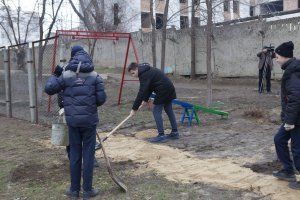 В ходе организованного народным избранником субботника с участием педагогов и учащихся близлежащих школ №№8,15 был наведен порядок на прилегающей территории, подсыпаны песком места установки снарядов.