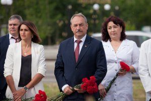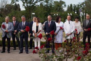 Сегодня, в преддверии Дня медицинского и фармацевтического работника, в Тирасполе отдали дань уважения медикам, которые работали в условиях военных действий и чрезвычайных ситуаций. Цветы к памятному знаку из черного гранита возложили Президент ПМР Вадим Красносельский, Председатель Верховного Совета ПМР Александр Коршунов, глава Правительства Александр Мартынов, министр здравоохранения Кристина Албул, депутаты, главврачи ведущих медучреждений республики, ветераны медицинской службы.