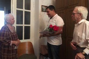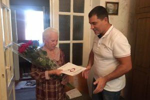 В праздничный день парламентарий Антон Онуфриенко вручил юбиляру поздравительный адрес, цветы и ценный подарок.
