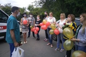 Депутаты вручили медикам подарки, это чайный набор и сладкие угощения. А рыбницкие активисты и волонтёры подарили врачам цветы и воздушные шары.