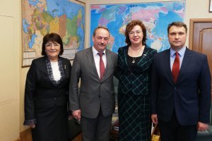 16 апреля Председатель Верховного Совета Александр Коршунов и глава Комитета по экономической политике, бюджету и финансам Олег Василатий встретились с заместителем Председателя Государственной Думы РФ, депутатом фракции «Справедливая Россия» Ольгой Епифановой. Приветствуя гостей, Ольга Епифанова поздравила Председателя Верховного Совета Приднестровья Александра Коршунова с недавним избранием на пост главы парламента Приднестровья.