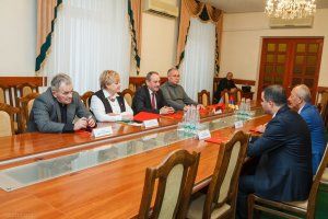Руководство Верховного Совета и члены Президиума сегодня провели встречу с делегацией Республики Арцах. Руководитель Аппарата МИД Семен Афиян и член Центризбиркома Нагорного Карабаха Араик Лазарян прибыли в Приднестровье в качестве международных наблюдателей на выборах президента.