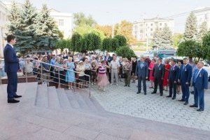 Почетное право открытия акции «Российский флаг» было предоставлено Председателю Верховного Совета Вадиму Красносельскому. Спикер от души поздравил тираспольчан и высоких гостей с праздником, посвященным российскому триколору: «Этот флаг овеян славой русских солдат. Под этим стягом в Приднестровье вошли российские миротворцы и остановили кровопролитие на берегах Днестра. Приднестровский народ сделал свой выбор – мы хотим быть вместе с Россией, поэтому этот праздник по праву и наш!»
