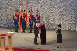 Глава Центризбиркома Елена Городецкая совместно с Председателем Конституционного суда Олегом Кабалоевым вручили Вадиму Красносельскому перевязь и удостоверение Президента ПМР.
