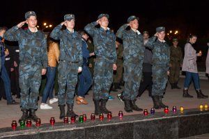 К участникам акции обратилась заместитель главы столичной госадминистрациии Мария Пащенко. Она напомнила молодежи о том, что они являются связующим звеном между прошлыми и будущими поколениями, и это накладывает ответственность быть достойными подвига своих отцов и дедов. Быть мужественными защитниками своей Родины призвала молодых людей председатель Общества бывших узников фашизма Татьяна Паято. 11 апреля во всем мире отмечают Международный день освобождения узников концлагерей. Свечи в этот день горят и в память о тех, кто был замучен и растерзан в бесчисленных фашистских гетто.