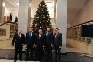 Затем Александр Коршунов встретился с депутатами фракции «Единая Россия»: заместителем председателя Комитета по делам СНГ, евразийской интеграции и связям с соотечественниками Госдумы РФ Умаханом Умахановым, который в этом году приезжал в Приднестровье, и с зампредседателя Комитета по делам национальностей, всемирно известным шахматистом Анатолием Карповым. Обсуждали продолжение межпарламентского сотрудничества.