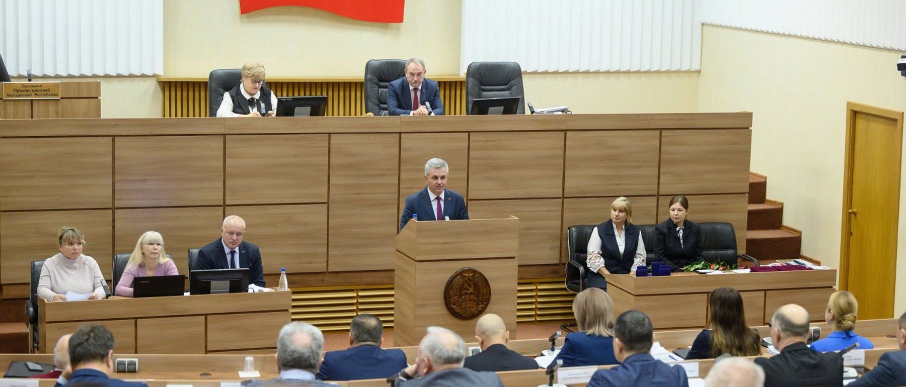 С 35-й годовщиной образования Верховного Совета депутатов и народ Приднестровья поздравил Президент ПМР Вадим Красносельский. Глава государства принял участие в работе пленарного заседания, говорил об исторических предпосылках создания Приднестровья и о роли депутатов в защите прав жителей республики.