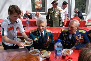 В этот день помогали ветеранам, накрывали на стол совсем юные мальчишки, наверное, такие же, какими были они сами в те далёкие военные годы. Много радости, музыки и пожеланий звучало на празднике.