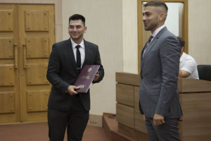 Председатель Молодежного парламента III созыва Александр Савич передал Роману Ефодиеву полномочия и папку с законодательными инициативами, которые еще находятся в стадии проработки.
