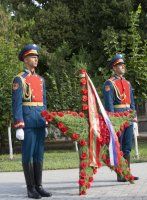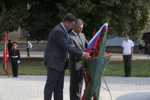 У памятника миротворцам и продолжились сегодняшние торжественные мероприятия. В руках руководителей республики цветы, как дань благодарности военнослужащим России, Приднестровья и Молдовы за ратный труд, за мир и спокойствие в домах, за улыбки детей, за возможность жить и не слышать свист пуль и снарядов. Венок к памятнику возложили Президент Приднестровья Вадим Красносельский и Временно-поверенный в делах РФ в РМ Роман Романов, за ними – командование ОГРВ, миротворческих сил РФ, депутаты Верховного Совета, представители органов государственной власти и управления ПМР, военнослужащие МС РФ и ПМР.