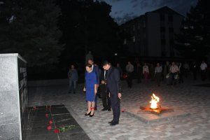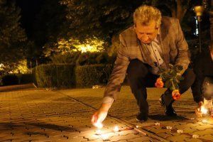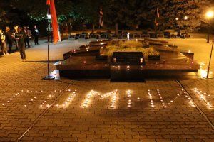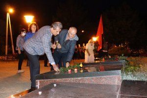 Осветили огни свечей дубоссарский Мемориал Воинской Славы. У братских могил советских воинов, погибших при освобождении города в апреле 1944 года, горожане выложили свечами слово «помним», почтили память всех погибших в годы войны минутой молчания и возложили цветы к могилам освободителей. Среди тех, кто нынешний рассвет встретил на Мемориале, – участники Великой Отечественной войны Владимир Зайчук и Владимир Костенко, депутат Верховного Совета ПМР Борис Герман, заместитель главы государственной администрации Дубоссарского района и г. Дубоссары Наталия Кравец. В утренней тишине особенно пронзительно и эмоционально воспринималась реконструкция первых часов войны, когда молодые ребята уходили на фронт, чтобы войти в бессмертие.