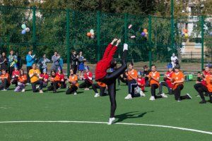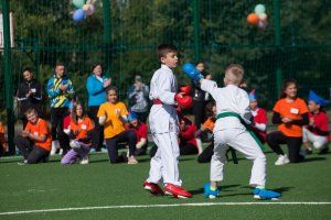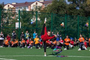 На открытии стадиона учащиеся спортивных секций города и школьники продемонстрировали спортивные навыки. Руководители республики оставили автографы на футбольном мяче. Он будет храниться в музее школы №18.