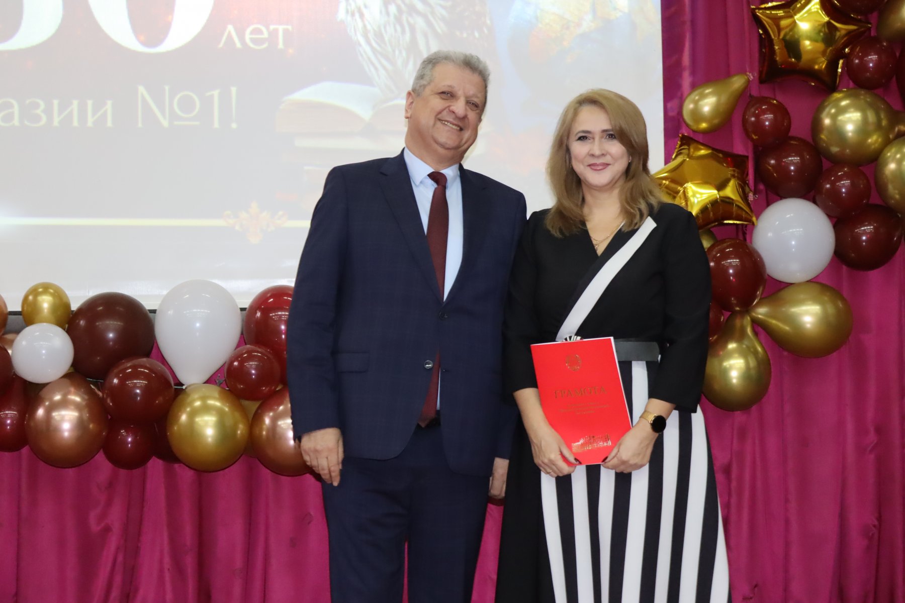 Со 130-летним юбилеем образовательного учреждения коллектив гимназии поздравила руководитель аппарата Дубоссарского территориального отделения республиканской партии «Обновление» Ирина Владимирова.