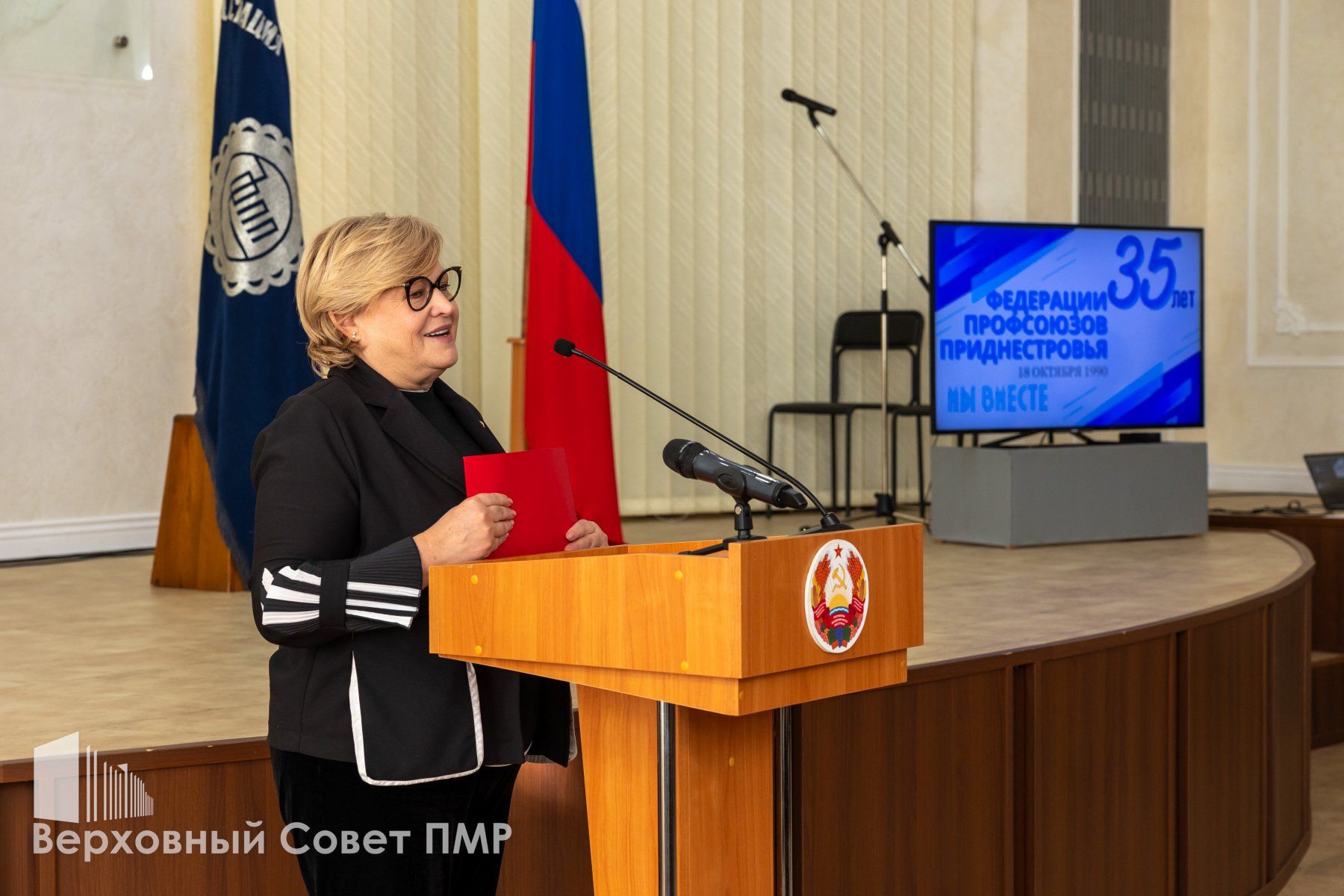 «Приднестровская Федерация профсоюзов прошла непростой путь, успешно выполняя на протяжении всей своей истории ключевую миссию - объединение и согласование действий профсоюзных организаций по республике для представительства и обеспечения социально-трудовых, профессиональных и правовых интересов работающих граждан», - отметил Председатель Верховного Совета Александр Коршунов, поздравляя профсоюзное движение с 35-летием.