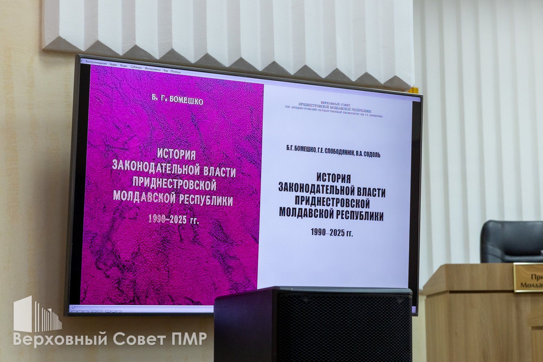 На торжественном собрании в честь юбилея презентовали обновленный сайт парламента, а также электронную версию книги «История законодательной власти Приднестровской Молдавской Республики», которая вскоре станет доступной для читателей. Это монография, подготовленная учеными Приднестровского госуниверситета. Научное исследование посвящено становлению и развитию законодательной ветви государственной власти республики. Есть фотографии и копии судьбоносных документов Верховного Совета, таких как Конституция 1991 года, в которой были зафиксированы права и свободы граждан молодой республики.