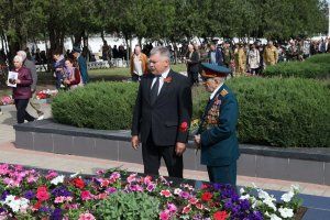 На гранитные плиты с именами погибших и к Вечному огню легли живые цветы – в знак благодарности поколению победителей за их стойкость, мужество и героизм, беззаветную любовь к родному Отечеству, мирное небо над головой.