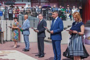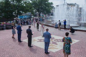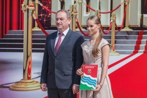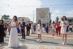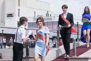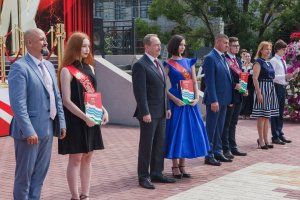 109 лучших выпускников Тирасполя сегодня собрались у центрального фонтана. Золотые и серебряные медали им вручали Председатель Верховного Совета Александр Коршунов, зампред Правительства Сергей Оболоник, министр просвещения Алла Николюк, глава столичной госадминистрации Олег Довгопол и председатель горсовета Альбина Иванова.