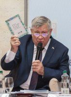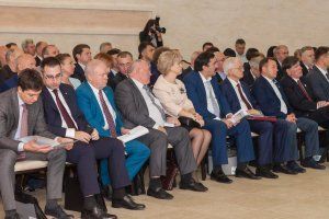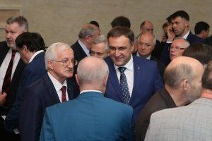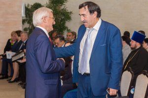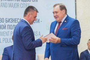 Опытом привлечения инвестиций в развитие и благоустройство городов поделились российские гости. В завершении пленарного заседания президенту Вадиму Красносельскому и Председателю Верховного Совета Александру Щербе российские гости вручили награды Российского союза ветеранов.