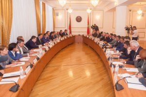 В Доме официальных приемов состоялась встреча руководства республики с посетившими ПМР с визитом российскими бизнесменами. В составе делегации – члены руководящего органа общественной организации «Деловая Россия», Российского торгово-финансового союза, члены советов директоров крупных компаний, работающих в различных сферах экономики. О масштабах и влиянии бизнес-десанта из России может свидетельствовать всего одна цифра: на предприятиях, входящих в «Деловую Россию», работает свыше миллиона россиян, а оборот составляет триллионы рублей.