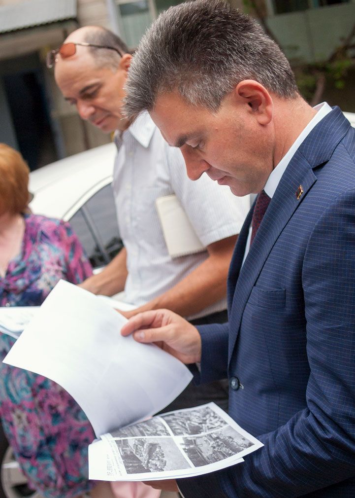 Перед тем как встретиться с коллегами из местного Совета народных депутатов, Председатель Верховного Совета Вадим Красносельский, его заместитель Александр Щерба, парламентарий Вадим Кравчук заехали во двор, где расположен кооперативный дом №45, по ул. Юбилейной. Он примечателен тем, что в ночь с 18 на 19 июня этого года во время сильного урагана во двор упала… крыша. Крыша была шатровой, из оцинкованного профиля, но не была надлежащим образом закреплена. Два года назад ее установила одна из местных фирм. Теперь ее все разыскивают, чтобы возместить ущерб, привлечь к ответственности. «Это прерогатива правоохранительных органов, а нам нужно подумать о людях, скоро осень, а там и зима. Неверно оставлять жителей этого дома один на один с их бедой только потому, что дом кооперативный. В нем проживают рыбничане, приднестровцы, я вижу, что в основном пенсионного возраста. Средств у них на восстановительные работы нет. Мы изучим сложившееся положение, посмотрим, какую помощь можно будет оказать», – сказал Вадим Красносельский.