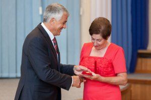 От имени Председателя Верховного Совета Александра Щербы, который родился в семье медицинских работников, глава ответственного парламентского комитета вручил приветственный адрес.