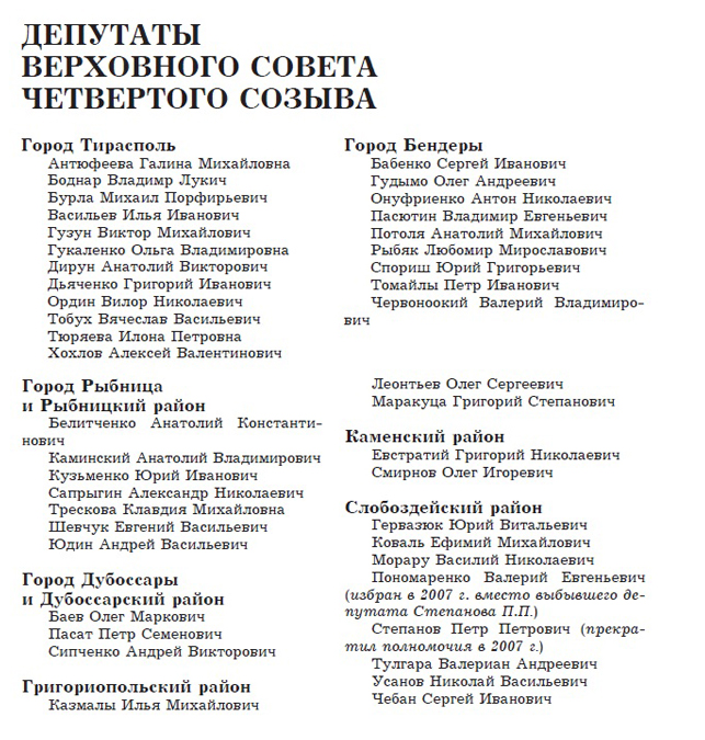 По материалам книги Б.Г. Бомешко «История законодательной власти Приднестровской Молдавской Республики 1990–2015 гг.»