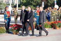 Официальные торжества в день празднования 25-летнего юбилея образования Приднестровской Молдавской Республики открыла церемония возложения цветов и венков к могилам павших воинов. Каждый цветок, бережно опущенный на каменные плиты Мемориала Славы первыми лицами государства-юбиляра, его защитниками и членами семей погибших героев, зарубежными гостями и жителями столицы, символизирует неисчерпаемую благодарность тех, кому посчастливилось жить в новой, свободной, мирной стране.