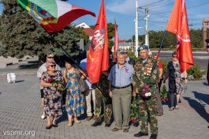 Сразу после церемонии возложения цветов на площади Суворова в Тирасполе были подняты государственные флаги Приднестровья и России. 32 года назад - 2 сентября 1991 года - на IV съезде депутатов всех уровней был утвержден государственный флаг нашей республики. Он повторяет цвета флага Молдавской ССР. Закон об использовании флага России в Приднестровье наравне с флагом ПМР был принят в апреле 2017 года. Согласно документу, российский флаг поднимается одновременно с приднестровским на зданиях Администрации Президента, Верховного Совета, Правительства и других ведомственных и административных зданий. Постоянно оба флага установлены в зале заседаний Верховного Совета, в Правительстве, в залах судебных заседаний и в местных органах власти. На торжественных мероприятиях российское знамя всегда поднимают в небо вместе с приднестровским флагом.