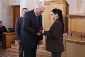 «В прошлом году Верховному Совету Приднестровской Молдавской Республики исполнилось 35 лет. В связи с этим по распоряжению Председателя Верховного Совета ряд граждан были удостоены юбилейным знаком. Среди них – наш выдающийся государственный деятель, который не только возглавляет район, но и был депутатом Верховного Совета II созыва. Примите слова благодарности за многолетний труд на благо наших граждан», – отметила Татьяна Залевская.