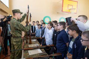 Накануне Дня Победы урок истории в столичной школе №11 оказался непривычным. За партами в одном кабинете сразу два класса – пятый и девятый, а у доски – два учителя. Ученикам включали отрывки из марша «Прощание славянки» и своеобразный гимн начала Великой Отечественной – песню «Священная война». Спустя 79 лет после Победы ветеранов в Приднестровье осталось совсем немного. И приходить в школы к детям, рассказывать о том, что они пережили, уже не позволяет здоровье и солидный, почти вековой возраст. Поэтому на этом классном часе вместо ветеранов говорит оружие. Активисты из общественной организации «Наследники Победы» принесли автоматы, пистолеты и гранаты, которые в свое время были найдены и обезврежены поисковиками на полях сражений Великой Отечественной.