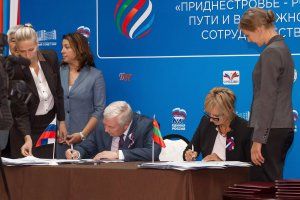 В продолжение межрегионального форума «Приднестровье – Россия: пути и возможности сотрудничества» был подписан ряд соглашений о партнёрстве и взаимодействии. Планы и намерения, озвученные сегодня в ходе дискуссий, нашли свое отражение в конкретных документах. Участники форума стали свидетелями подписания соглашения о сотрудничестве между Верховным Советом ПМР и законодательным собранием Иркутcкой области, совместных заявлений о партнерстве и взаимодействии в области развития межрегиональных связей с Брянской и Калининградской областью. Подписи были поставлены и под документами о сотрудничестве между городскими и районными Советами народных депутатов и законодательными собраниями и областными думами регионов РФ: Смоленска, Воронежа, Иркутска, Калининграда, Калуги, под договорами, определившими «дорожную карту» сотрудничества между Торгово-промышленными палатами Приднестровья и Московской области, молодежными организациями России и Приднестровья.