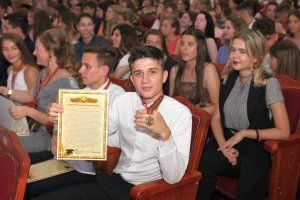 Во Дворце Республики состоялась церемония вручения золотых и серебряных медалей лучшим выпускникам Приднестровья. В этом году их рекордное количество: 380 молодых людей, 220 из которых обладатели золотой награды, 160 – серебряной. Поздравить ребят пришли руководители республики: президент Вадим Красносельский, глава правительства Александр Мартынов, председатель парламентского комитета по образованию, науке и культуре Михаил Бурла.