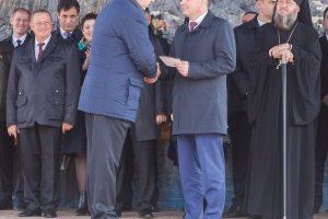 За вклад в развитие города руководители республики вручили заслуженным труженикам Дубоссар государственные награды. Среди тех, кто получил в праздничный день госнаграды, были технологи, педагоги, швеи, врачи, предприниматели, общественники. Затем почти 30 молодых людей получили из рук президента первый главный документ – паспорт ПМР.
