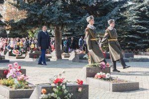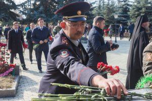 После этого участники митинга направились к Мемориальному комплексу воинской славы. Как сегодня не раз отмечалось, дубоссарцы всегда мужественно защищали свой край. В годы Великой Отечественной они бесстрашно сражались с фашистами. В 1992 году Дубоссары приняли первый удар молдавских агрессоров. Необъявленная война унесла жизни 156 защитников города Дубоссары. К плитам погибших героев руководители республики, ветераны и горожане возложили живые цветы. «Мы понесли большие человеческие потери. Трагедия разворачивалась на наших глазах, здесь, на центральной площади города. Но страшные события не сломили дубоссарцев, а сплотили нас. Сегодня горожане вправе жить достойно, сохранять традиции прошлого и уверенно смотреть в будущее. Я уроженец Дубоссар и просто не мыслю себя без этого города», – рассказал в интервью парламентской пресс-службе депутат, представляющий в законодательном органе республики интересы дубоссарцев, Петр Пасат.