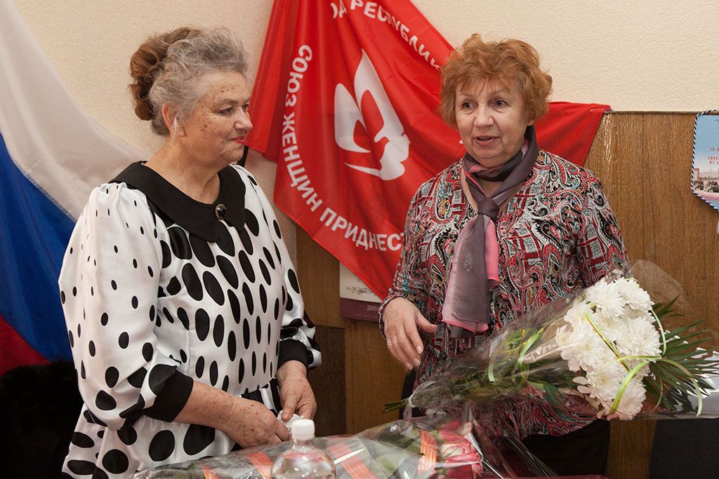Члены общественной организации «Союз женщин в защиту Приднестровья» г. Тирасполя во главе с Ниной Дегтяревой принимают сегодня поздравления по случаю 19-й годовщины со дня образования. Первым адресованное женщинам поздравление поступило от Председателя Верховного Совета Вадима Красносельского. Почетную миссию, ввиду нахождения главы законодательного органа в служебной командировке в Москве, было поручено выполнить заместителю председателя парламентского комитета по законодательству, обороне, безопасности, миротворческой деятельности, правоохранительным органам, защите прав и свобод граждан Григорию Дьяченко.