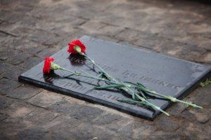 Память жертв Холокоста почтили минутой молчания. К памятнику невинно убиенным в годы фашистской оккупации возложили живые цветы.