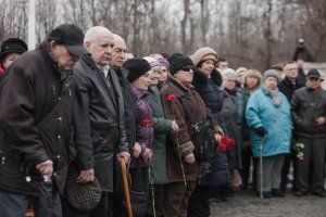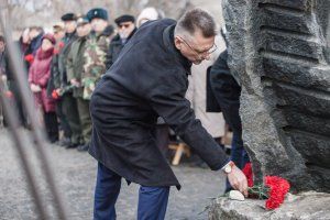 Глава государства призвал участников траурного митинга, узников фашизма, передавать историю событий 75-летней давности последующим поколениям.