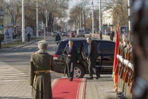 Участие в торжественном мероприятии принял освободивший пост главы государства Евгений Шевчук. Он поблагодарил свою команду за поддержку и пожелал избранному президенту улучшить жизнь приднестровцев.