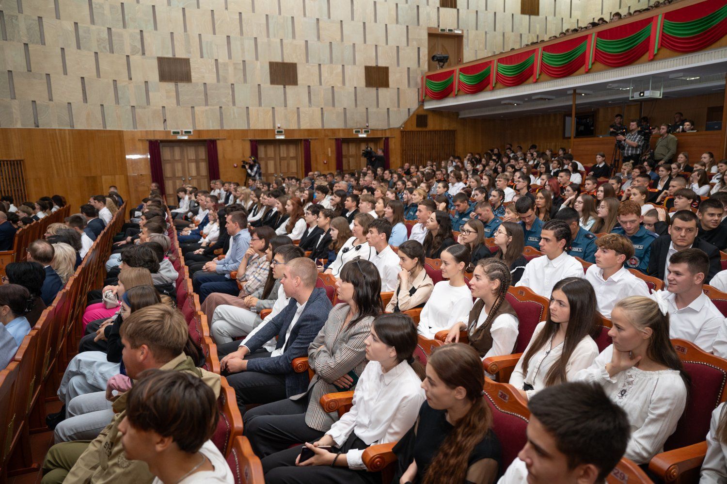 Глава государства провел уже третью лекцию для молодежи из цикла «Открытый урок истории с Президентом» в рамках проекта «Диалог на равных». Приглашения на открытый урок получили 700 человек. Это старшеклассники и студенты начальных курсов учреждений среднего и высшего профессионального образования из всех городов и районов республики. Вместе с представителями молодого поколения приднестровцев лекцию во Дворце Республики слушали Председатель Верховного Совета ПМР Александр Коршунов и его заместитель Галина Антюфеева.