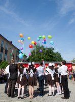 Завершили праздничную линейку прощальный вальс и последний звонок. По традиции ребята запустили в голубую высь разноцветные шары с белыми бумажными голубями как символ полета в большую и светлую жизнь.