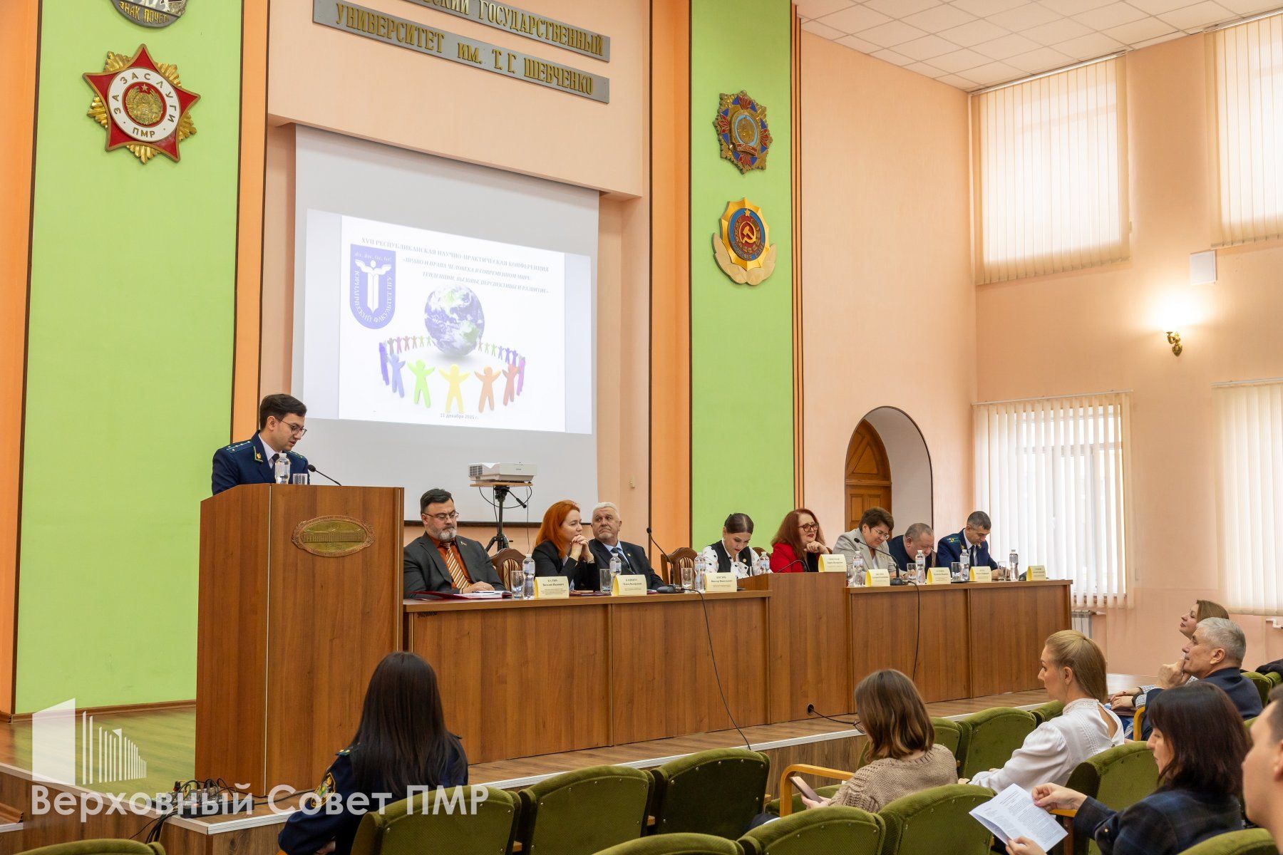 «Право и права человека в современном мире: тенденции, вызовы, перспективы и развитие» – на такую тему в ПГУ прошла XVII Республиканская научно-практическая конференция. В ее работе принял участие председатель Комитета Верховного Совета по образованию, науке, культуре, общественным объединениям, спорту, информационной и молодежной политике Виталий Калин. Конференция проходит ежегодно в рамках Всемирного дня прав человека. Формат общения представителей власти, научного сообщества и студентов помогает выявлять проблемы, связанные с нарушениями прав людей.