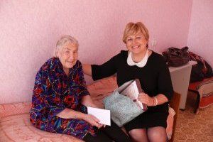 Парламентарий вручила Надежде Мансуровой подарок, цветы и пожелала ей здоровья, мира, семейного тепла.