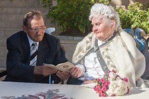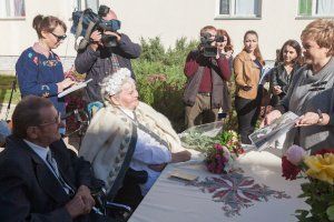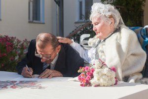 Двое жителей столичного дома-интерната для престарелых граждан и инвалидов Вячеслав Александрович Терещенко и Варвара Николаевна Кузьмина решили пожениться. Жениху 75 лет, невеста на два года старше. Познакомились молодожены в интернате. Вячеслав Александрович красиво ухаживал за Варварой Николаевной, приносил ей сладкие угощения, заботился. Говорит, полюбил ее за честность и принципиальность. После двух лет, проведенных рядом, он сделал предложение руки и сердца. Варвара Николаевна, конечно, согласилась. Свадьба была настоящей: марш Мендельсона, цветы, жених в костюме, невеста вся в белом. «Создавая семейный союз, вы вступаете на нелегкую, ответственную, но прекрасную дорогу семейной жизни. Хочется пожелать, чтобы те годы, которые вам предстоит прожить вместе, были для вас самыми радостными и счастливыми», – обратилась к молодым сотрудница столичного ЗАГСа.
