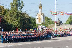 День рождения республики в этом году отметили торжественным шествием. В колонне, прошедшей по центральной площади столицы Приднестровья, – многодетные семьи, приехавшие в Тирасполь со всей республики, женщины, удостоенные почетного звания «Мать-героиня». В настоящее время в республике проживет более трех с половиной тысяч многодетных семей. В них воспитывается почти 13 тысяч юных приднестровцев. В след за многодетными семьями по площади прошли представители творческих династий художников, артистов, музыкантов, педагогов и спортсменов.