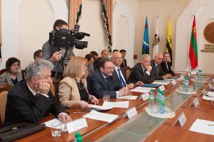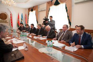 Впервые на парламентской площадке состоялась встреча руководства законодательного органа республики с представительной делегацией, в которую вошли посредники, гаранты и наблюдатели за ходом переговорного процесса между РМ и ПМР. Дипломатов из различных стран и международных организаций – России, Украины, США, ЕС и ОБСЕ – приняли Председатель Верховного Совета Вадим Красносельский, его заместитель, руководитель парламентской комиссии по внешней политике и международным связям Галина Антюфеева, глава совещательного собрания первых приднестровских депутатов, первый президент ПМР Игорь Смирнов, а также советники спикера.