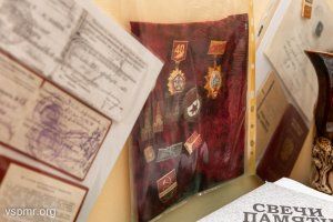 В новом музее-комнате экспонатов пока немного. Но выставка будет пополняться, говорят здесь. Пока на стенах разместили плакаты, по которым можно проследить историю сражений. Есть здесь и собранная информация по самым известным героям Великой Отечественной, собирают в музее информацию и о ветеранах родного избирательного округа №28. Сегодня, прямо перед открытием появился новый артефакт.