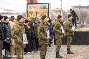 В день 33-й годовщины со дня гибели бойцов 1-го батальона Республиканской гвардии на столичном Мемориале Славы прошел митинг-реквием. Участие в памятных мероприятиях приняли заместитель Председателя Верховного Совета ПМР, глава Комитета по законодательству, защите прав и свобод граждан Галина Антюфеева и председатель Комитета по образованию и общественным объединениям Игорь Буга, Первый Президент ПМР, глава Совещательного собрания первых приднестровских депутатов Игорь Смирнов.
