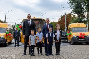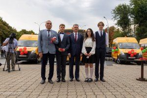 Накануне Дня знаний Президент ПМР Вадим Красносельский вручил главам госадминистраций Слободзейского, Григориопольского, Дубоссарского, Рыбницкого и Каменского района ключи от 17 новых современных школьных автобусов.