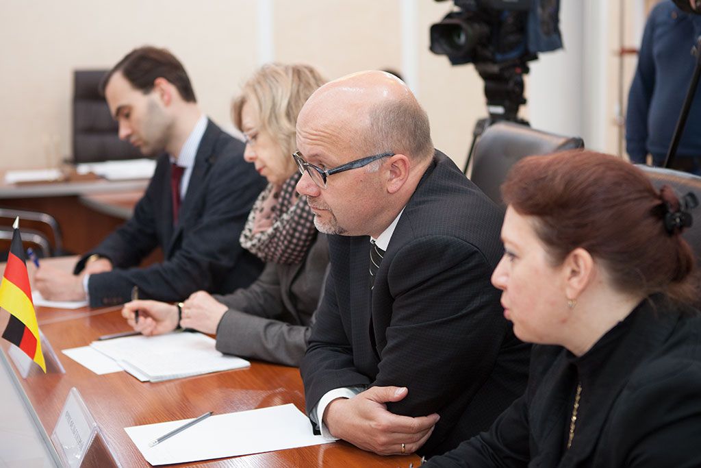 Председатель Верховного Совета Вадим Красносельский встретился с главой делегации, депутатом бундестага ФРГ Фрицем Фельгентрой. В составе иностранной делегации также – Чрезвычайный и Полномочный Посол ФРГ в РМ Ульрике Мария Кноц, директор немецко-молдавского форума Юлия Мезер.