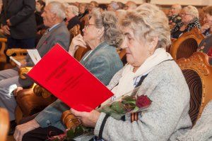 В малом зале Дворца Республики собрались члены Союза ветеранов войны, труда и вооруженных сил. Поздравили виновников торжества заместитель Председателя Верховного Совета Галина Антюфеева, депутаты Илона Тюряева и Андрей Сафонов, глава правительства Александр Мартынов.